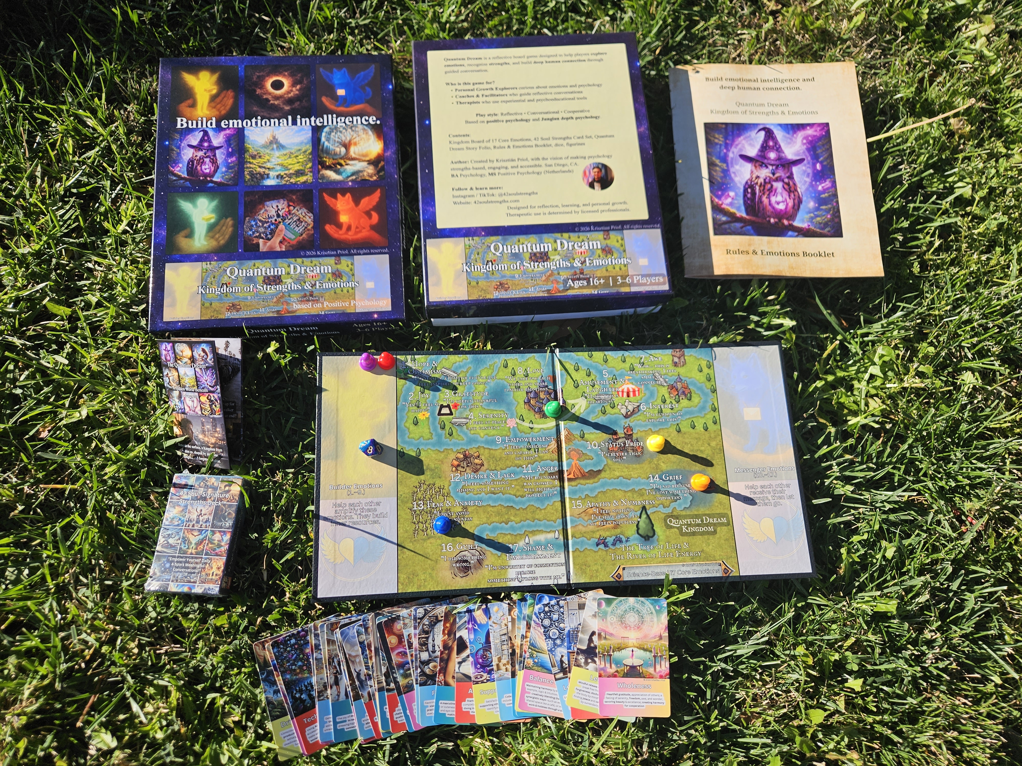Quantum Dream™ is an experiential learning system. Delivered through a boardgame-style format, it is a guided conversation tool that helps you reflect on your emotions, recognize strengths, and build real human connection.
