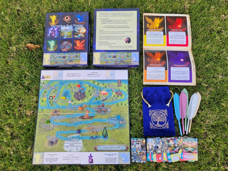 Quantum Dream™ is an experiential learning system. Delivered through a boardgame-style format, it is a guided conversation tool that helps you reflect on your emotions, recognize strengths, and build real human connection.